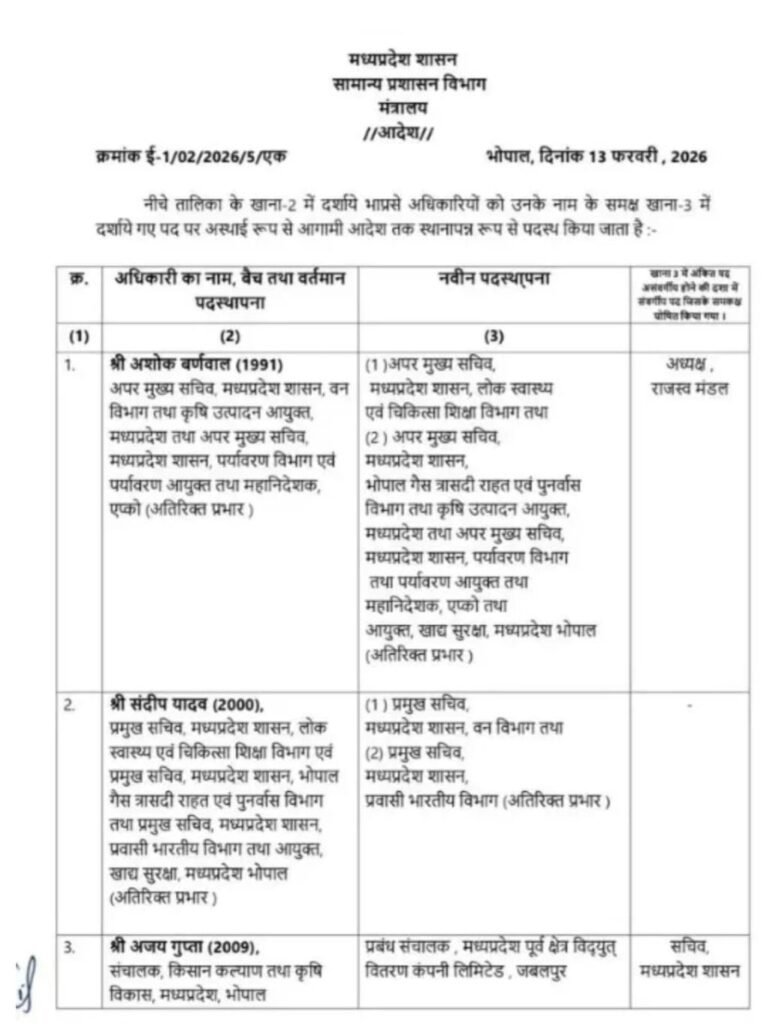 मध्य प्रदेश में आधी रात को हुआ बड़ा उलटफेर: 11 आईएएस अफसर के हुए तबादले: